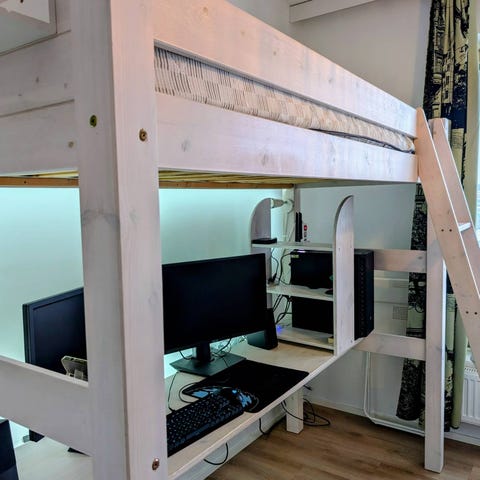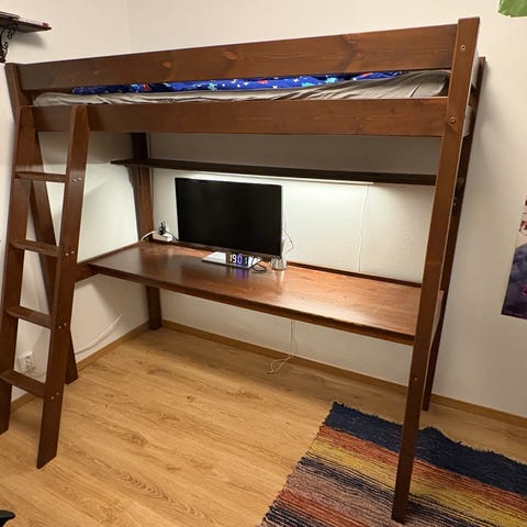 Sotka parvisängyn työtaso ja hylly