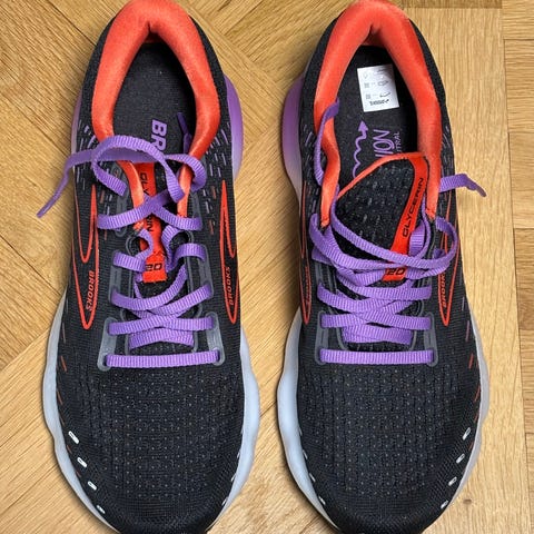 Jonkin verran käytetyt Brooksin lenkkarit koossa 40 (25,5cm). Käytön jälkiä on, mutta näillä vielä kilometrejä jäljellä runsaasti.