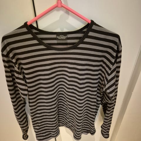 Myydään viisi Marimekon paitaa. Yksi on lyhythihainen ja muut ovat pitkähihaisia.