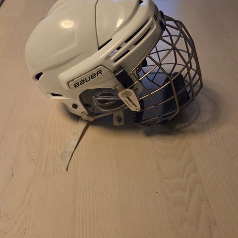 Häkillinen kypärä, ehjä ja puhdas. Koko 52-57. Valkea