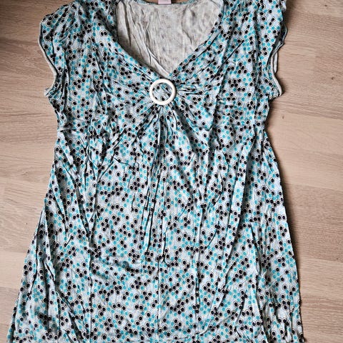 Lintu Kuviolla Oleva Musta T-Paita Merkki:LINK Edessä 4 Nappia ,95% Viskoosi 5% Elastaani Koko:S