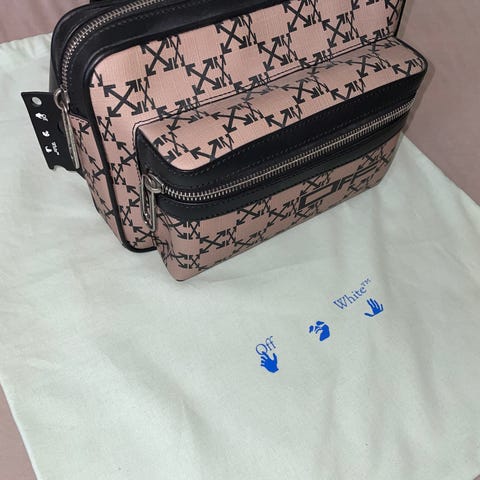 Off whitin amorepacific laukku, johon sisältyy kosmetiikka tarvikkeita sekä maski ja kaikki mitä kuvassakin näkyy