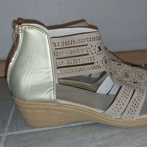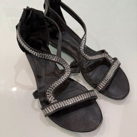 Tyylikkäät rock-henkiset sandaalit koossa 40. Vastaa hyvin kokoaan. Takana oleva vetoketju auttaa pukemisessa.Juu