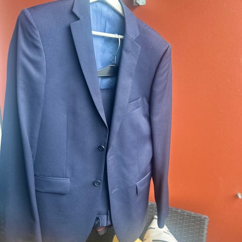 Käytetty kaksi kertaa. Ei tahroja, ei virheitä. Takissa sivuhalkiot.
