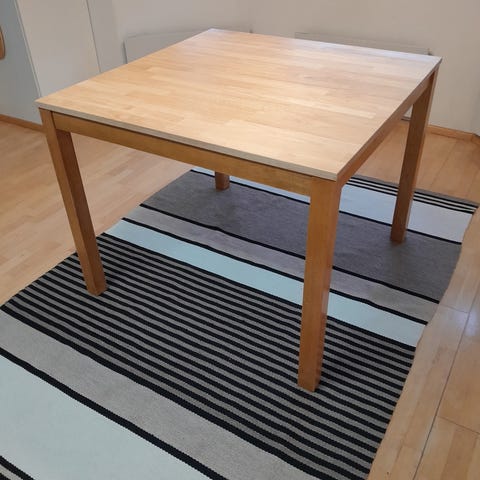 Ruokapöytä laminaattikannella ja design jaloilla