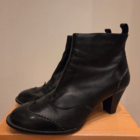 Clarks mustat korkokengät koko 6, joka vastaa mielestäni kokoa 38,5. Jalan päällä säädettävä remmi. Nahkaa