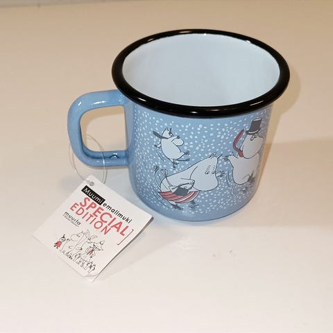 Emalinen Muurla muumimuki Muumimamma & Muumipappa valmistettu 2011 - 2012. Muumimammassa pieni pinta naarmu, katso kuvat.