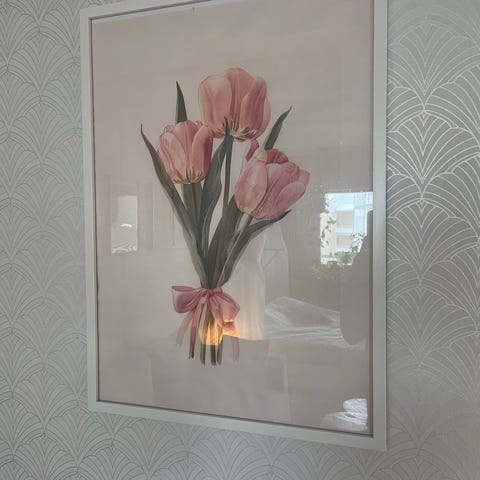 Kaunis taulu jossa valkoisia kukkasia. Ehjä ja siisti.