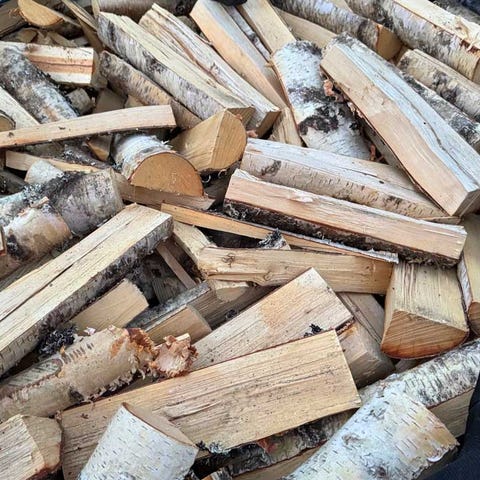 On sale are dry 30-33 cm and approx. 25 cm birch wood packed in 50 liter mesh bags for 8 euros/pack.