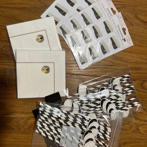 YO-juhliin servietit, pillit ja tarroja kutsuihin / kiitoskortteihin