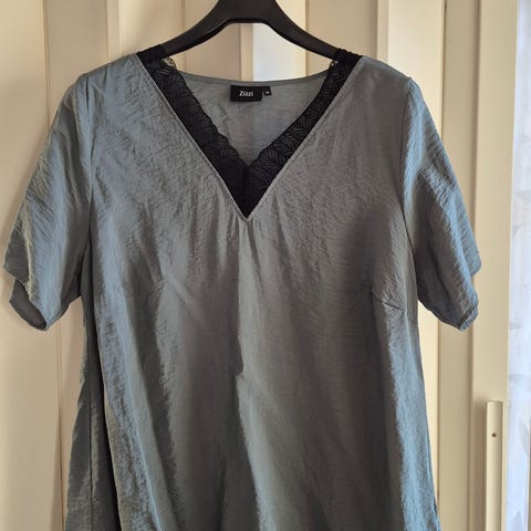 Zizzin miellyttävän tuntuinen pusero koossa 44-46(Zizzin koko M) Mitat; kainalo-kainalo57 helmanleveys 68 olkahelma 83.Edessä pienet laskokset 100%viskoosi.
