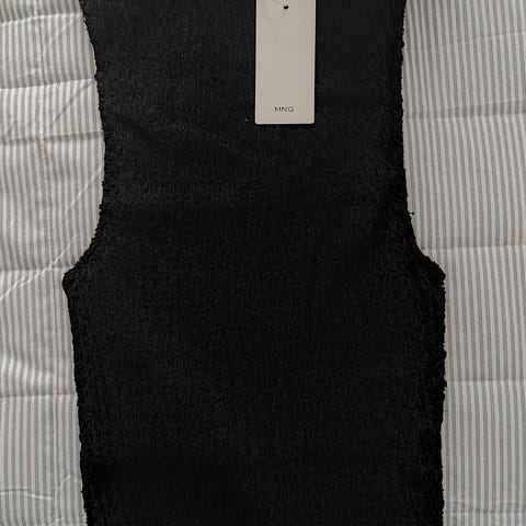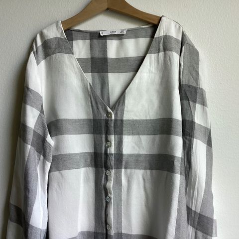 Mango hihaton silkkinen kauluspaita S-kokoisena. Mitat o-h 70 ja k-k 47. Siisti ja ehjä.
