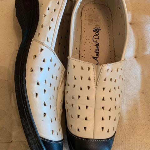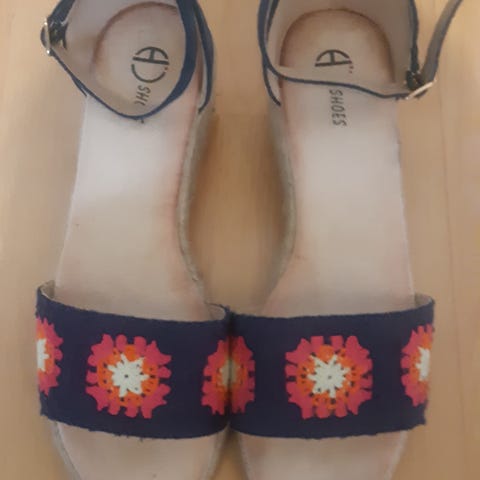 Myytävänä rennot Espanjasta ostetut Tribeca kesäkengät kokoa 41 ja vastaa mielestäni kokoa. Kengät on materiaaliltaan kirjailtua kanvaskangasta. Kumipohja ja vaaleat nilkan ympärille solmittavat nauhat. Sisäpituus vajaa 27 cm, koron korkeus 9 cm. Pari kertaa käytetty, hieman käytön jälkiä.