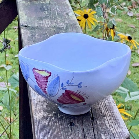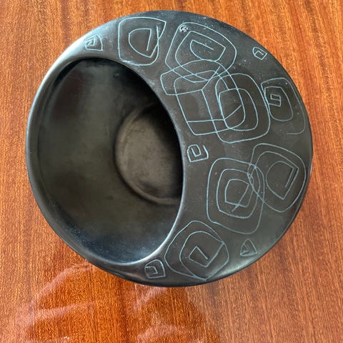 V.1934 Ensio Viitalan suunnittelema Satu Cu sarjan 22x17 cm tarjoilukulho. Kuvan aihio värittömänä. Reunat ehjät Piippuleimalla