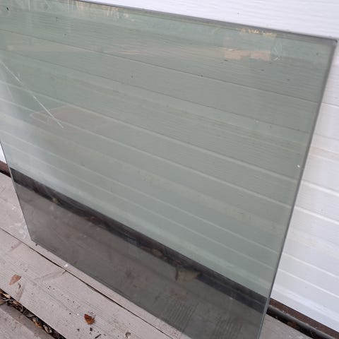 Harmaaksi maalattu ikkunan poka, kiiltävä lasi, koko 48x87 cm, ehjä.