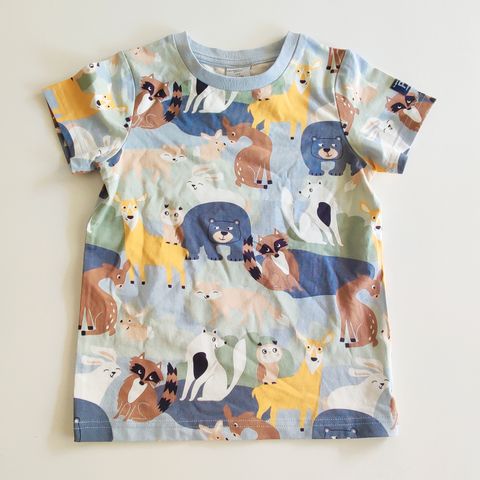 Eläin/metsäkuvioinen paita, koko 104 cm. Ei kulumia, ei nukkaa.