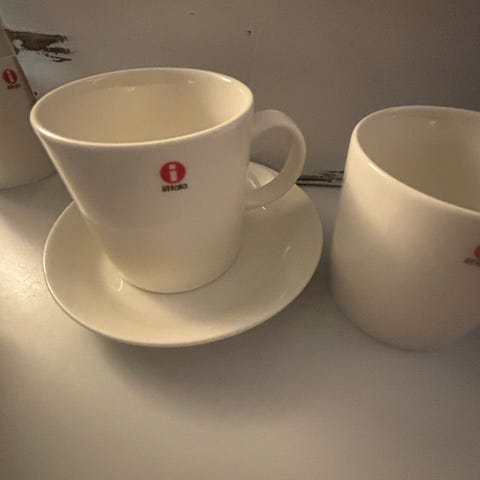 Kuusi kpl tumman vihreitä kahvikuppeja + alustoja, neljä kakkualustaa, sokerikko ja kermakko myydään edullisesti. Yhdessä kupissa pieni naarmu, muuten hyvä kantoisia. Lähialueelle myös voin tuoda, muuten nouto tai postitus (kulut lis. hintaan).