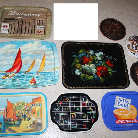 Upeita peltisiä ym tarjottimia vanhoilta hyviltä ajoilta 7 eur / kpl... vähäisiä käytön jälkiä saattaa esiintyä..