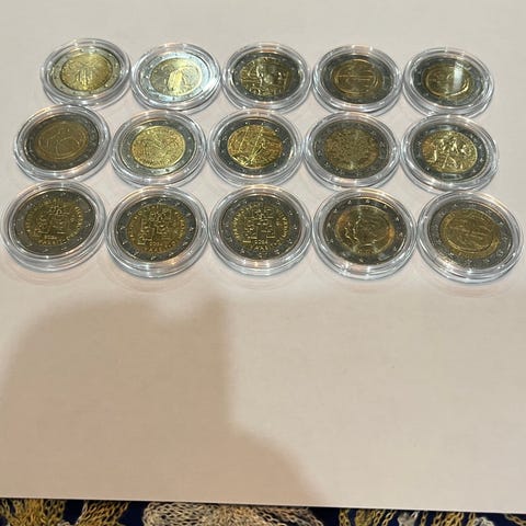 Myydään 2e juhlarahoja. Mieluiten kaikki kerralla, mutta voit tarjota myös yksittäisistä kolikoista. Kaikki ovat CIRC.