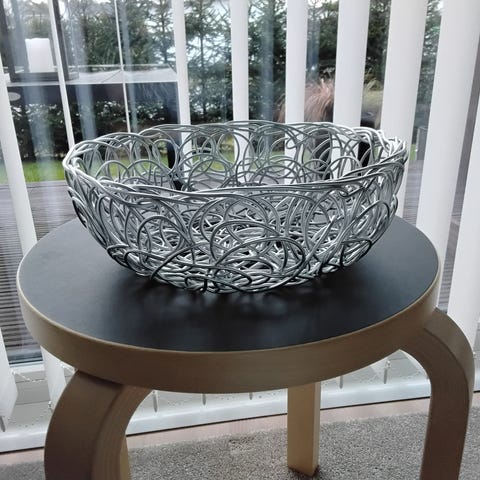 Alessin valmistama ja Fratelli Campanan suunnittelema (2007) kulho, materiaalina anodisoitu alumiini. Korkeus 9 cm, halkaisija 24 cm.