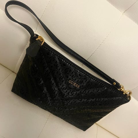 Guess kirjekuorilaukku, käsilaukku, iltalaukku, clutch bag musta koko 24x12cm. Aukenee tosi idoksi. Vetoketjutasku, korttikoloja paljon. Jäänyt vähälle käytölle. Ei vikoja.