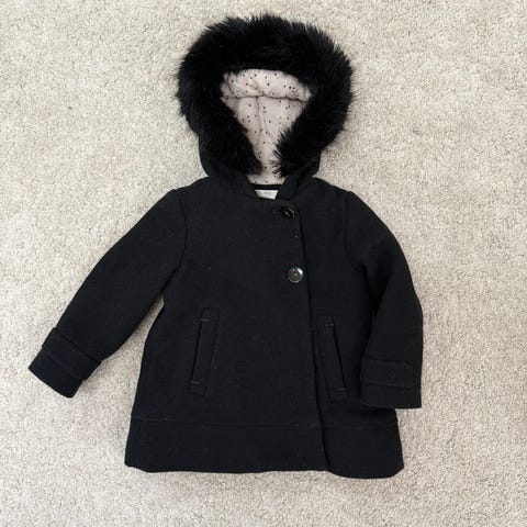 Myydään siisti ja ehjä Benetton villakangastakki (huom! 80% aitoa villaa), koko 100, musta, kuva hieman vääristää, on oikeasti täysin musta ja siisti, koiratalous