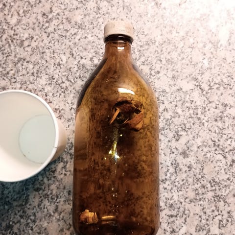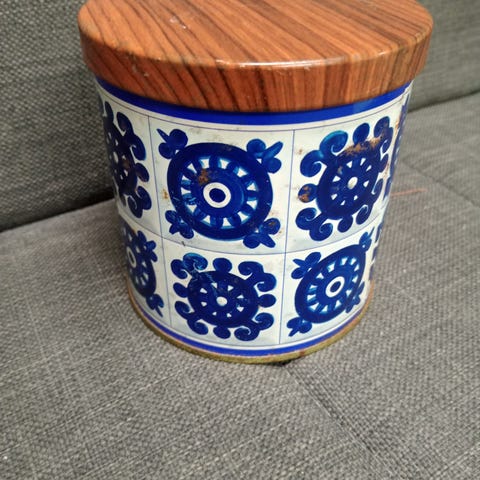 tyhjä, halkaisija 4cm, korkeus 2,5cm, pahvia, pahvirasia, hieman käytön jälkeä