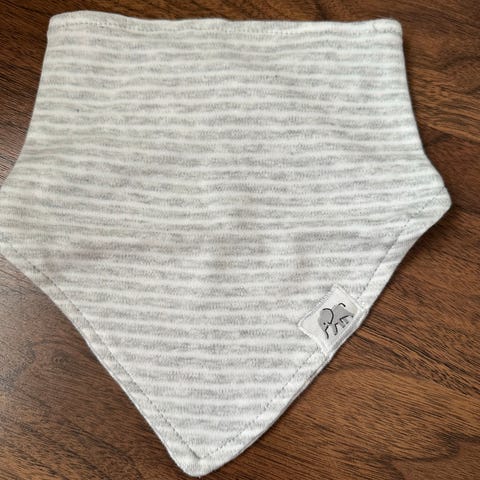 Familon-ruokalappu, kankainen jonka taustalla muovitus. Ollut joskus äitiyspakkauksessa.
