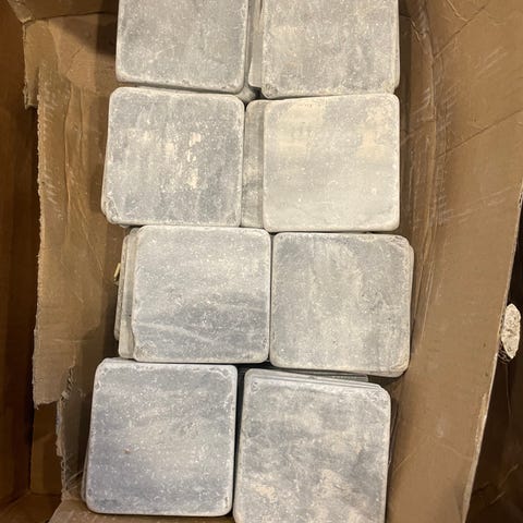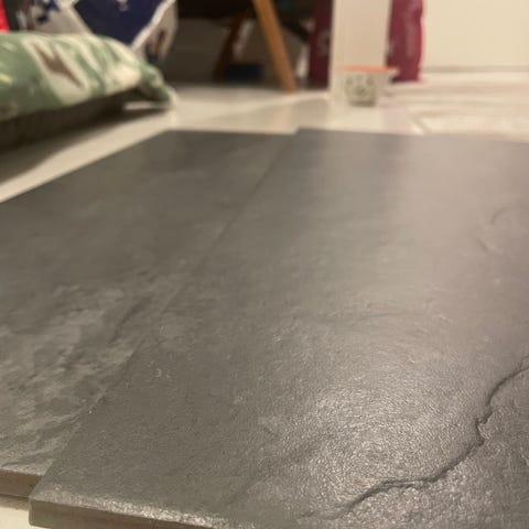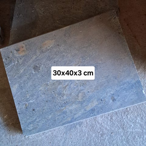 Lämmön varaamiseen. Uusi. Paikalleen kokeiltu. Ei mahtunut meillä kahta kunnolla. Kokeilusta muutama naarmu toisella puolella. Rypsiöljyllä käsitelty laatta tulee lähes mustaksi (kuvassa). Mukaan korokepalat 4 kpl.
