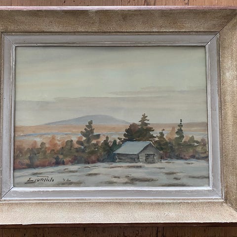 Einari Junttila akvarelli mitat kehysten päältä korkeus n.52cm leveys n.43,5cm kuva-ala korkeus n.34,5cm leveys n.26cm