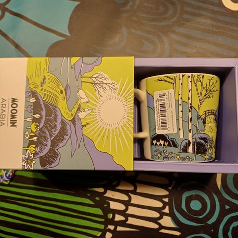 Tarrallinen, käyttämätön vuoden 2024 muuminpäivä muki. Mukana laatikko.