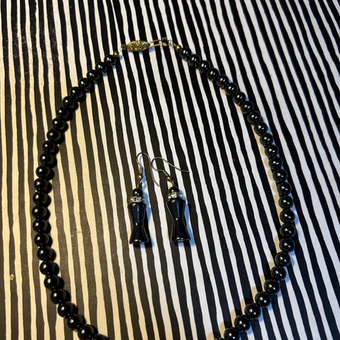 Näyttävät hemaattihelmi korut: kaulakoru ja korvakorut