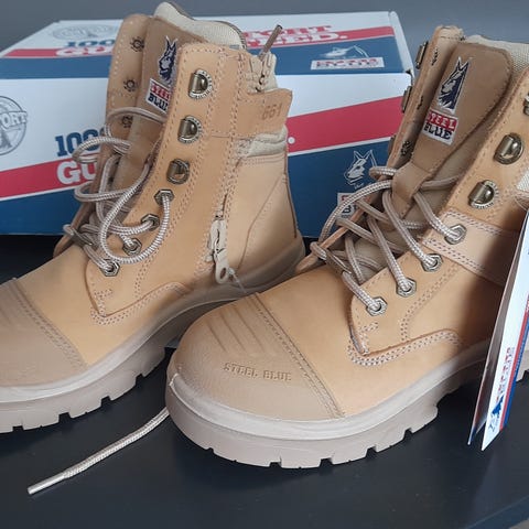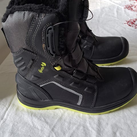 Käyttämättömät varrelliset naisten turvakengät, vetoketju varressa, koko 39, ehjät ja laatikossa
