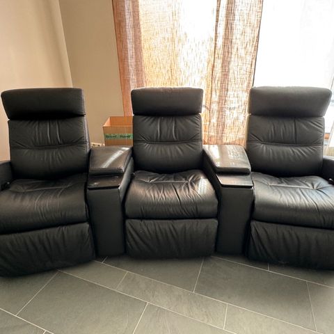 Kotimainen Pohjanmaan kalusteen laadukas nahkainen 3 istuttava sohva ja mekanismi tuolit.