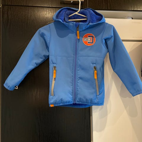 Todella siisti tumman sininen välikausitakki koossa 110cm. Ei muita moitteita kuin hihan suissa ja helmassa pientä nukkaa. Kangas täysin ehjä ja tahraton.
