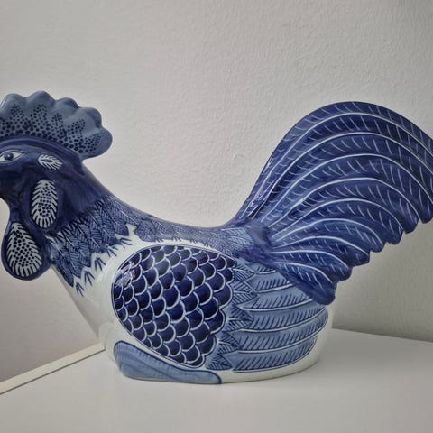 Upea keraaminen maalaistyylinen koristekukko. Korkeus 17 cm, leveys 13 cm. Täysin ehjä!