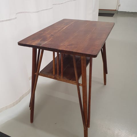 Käytössä ollut pöytä. Ajan platinaa on Mutta se vain kaunistaa tätä pöytää.
