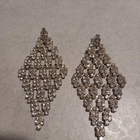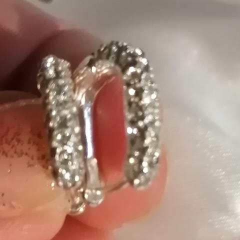 Käyttämättömät hopeiset roikkuvat korvakorut kirkkaalla kivellä. Nouto tai postitus toridiilillä.