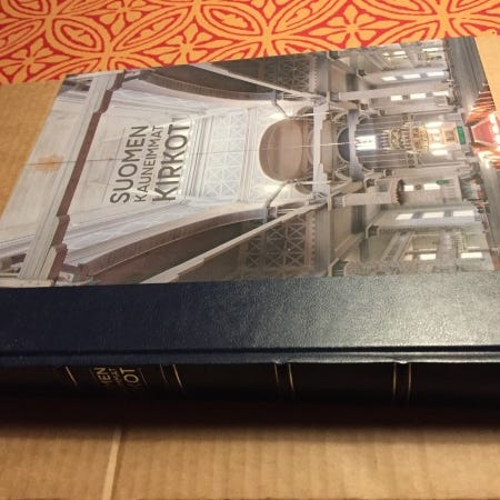 Hinta postitettuna 15 euroa. Kirjan otsikko Kuvat kertovat, Hämeenkylän seurakunta, Vantaan seurakunnat, teksti ja kuvat Jouko Siirilä, Aurinko Kustannus 2018, valo heijastuu kullanvärisiin kirjaimiin osittain,