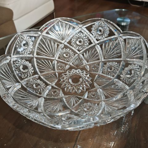 Myydään kristallisalaattikulho/karkkikulho, käsin timanttikiillotettu, valmistettu Neuvostoliitossa. 1900-luvun toinen puoli.