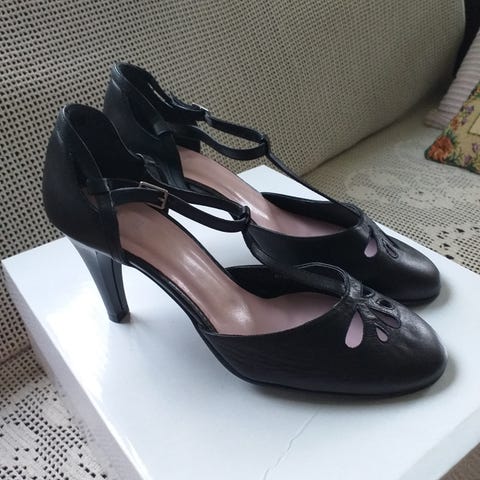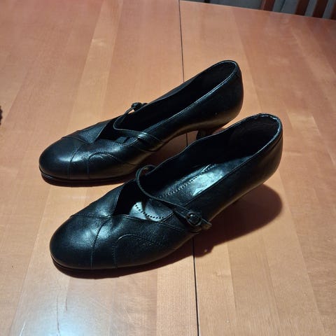 Janita, reilu koko. Tanssikengät. Korkolaput puuttuvat. Hinta 15 euroa.