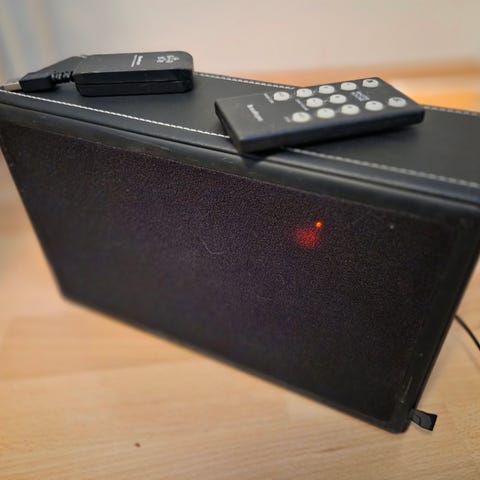 Käytetty viime vuodet television kaiuttimina ja siinä ovat ajaneet asiansa paremmin kuin hyvin. Mukana tuleekin living hub, jonka kautta kaiuttimet saa kytkettyä televisioon optisen liitännän kautta. Sen lisäksi mukaan Audio Pro RX 100 lähetin, kaukosäädin sekä kajarit itsessään.