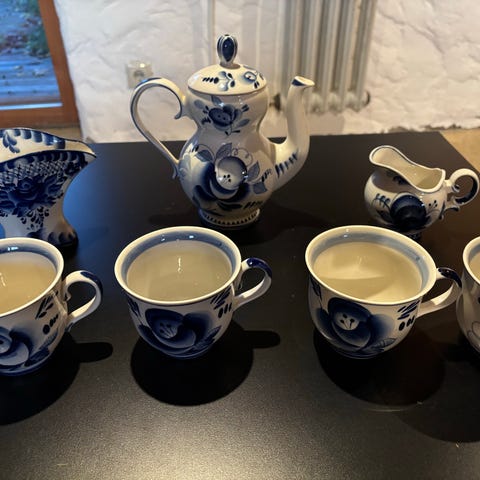 Yht.14 kpl: Gzhel astiasto + iso teekannu + juustotarjotin = 180 eur
