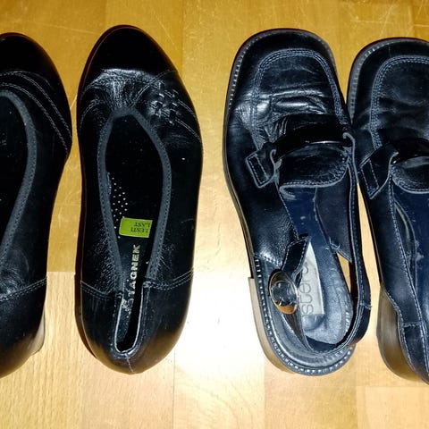 Juhlakengät, joista pinnoite lähtenyt kuoriutumaan. Kiilakorko. Merkki Marco Tozzi. Tuunaamalla voi saada kivaksi, muuten ehjät ja paristi käytetyt