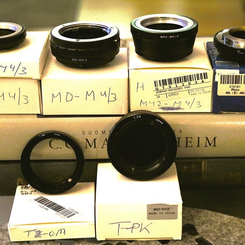Adaptereita, suodattimia, suurennusrenkaita, linssin kansia 46, 58mm.
