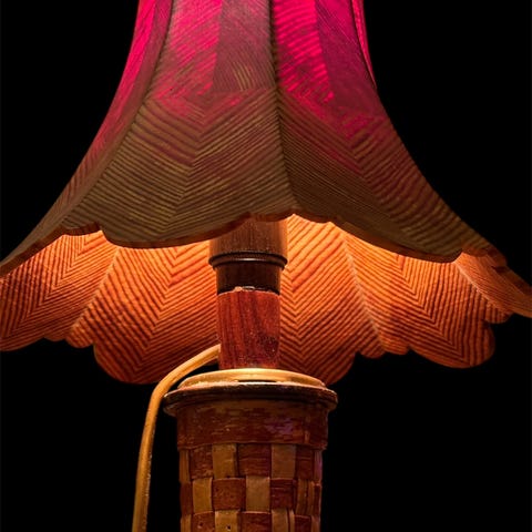 Täysin toimiva ja hyväkuntoinen, koivun juuripahkoista tehty pöytävalaisin. Sähköjohdon pituus 3 m.