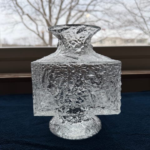 Myydään kaunis vintage lasimaljakko Crassus, design: Timo Sarpaneva, 60-70-luvulta.