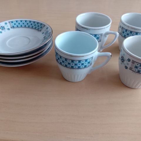 Uutta vastaavat, harmaat, sirot mokkakupit (6 kpl) lautasineen telineessään. Kupin vetoisuus n. 1 dl.