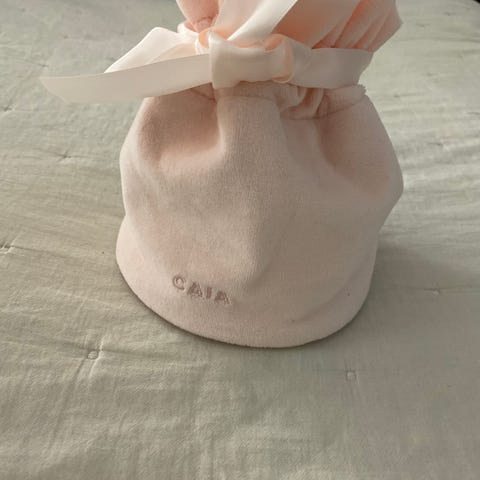 kuminauhallinen pussi ja toinen puoli on nauhalla suljettava isompi pussukka.
