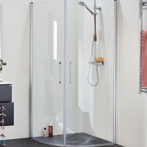 Lasinen suihkunovi joka soveltuu pieneenkin tilaan.